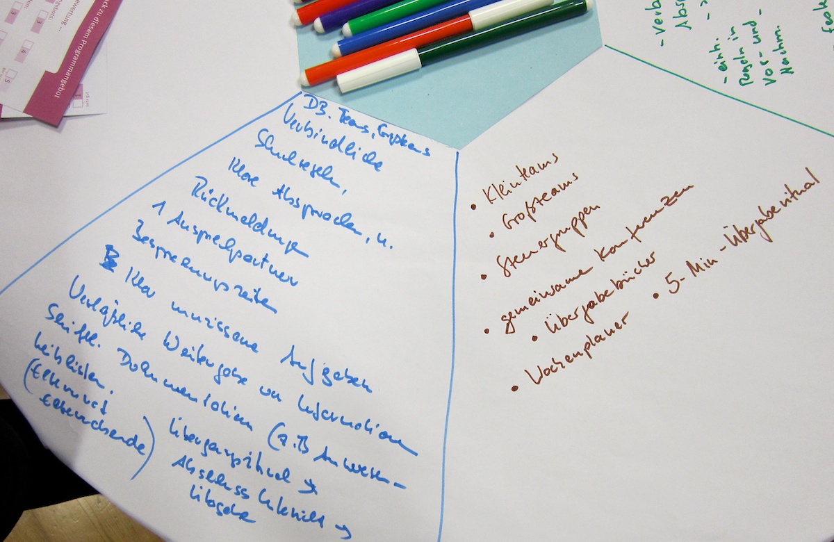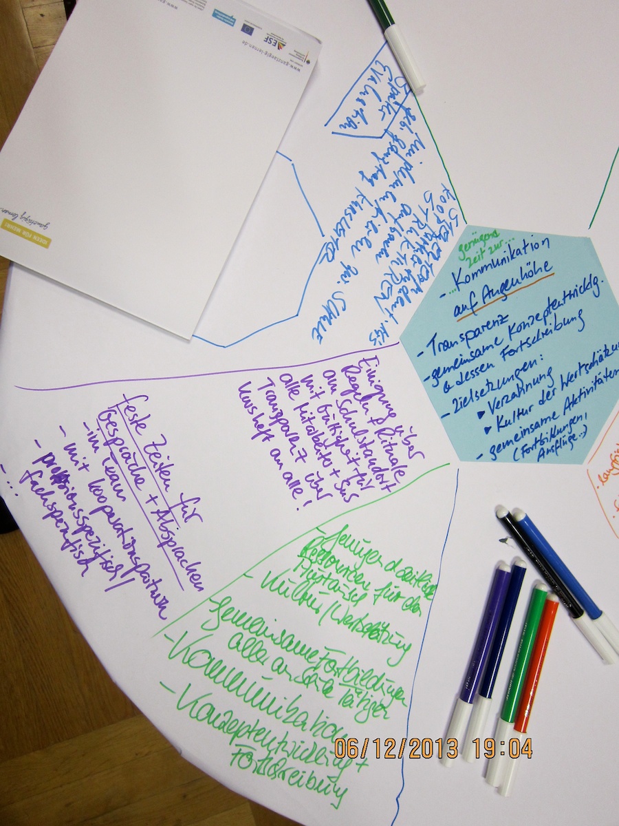- Es kam zur Erkenntnis, dass sowohl Schulen als auch außerschulische Partner den Zugang zueinander oft schwierig finden und es gut wäre, wenn beide Seiten weiter aufeinander zugehen würden.