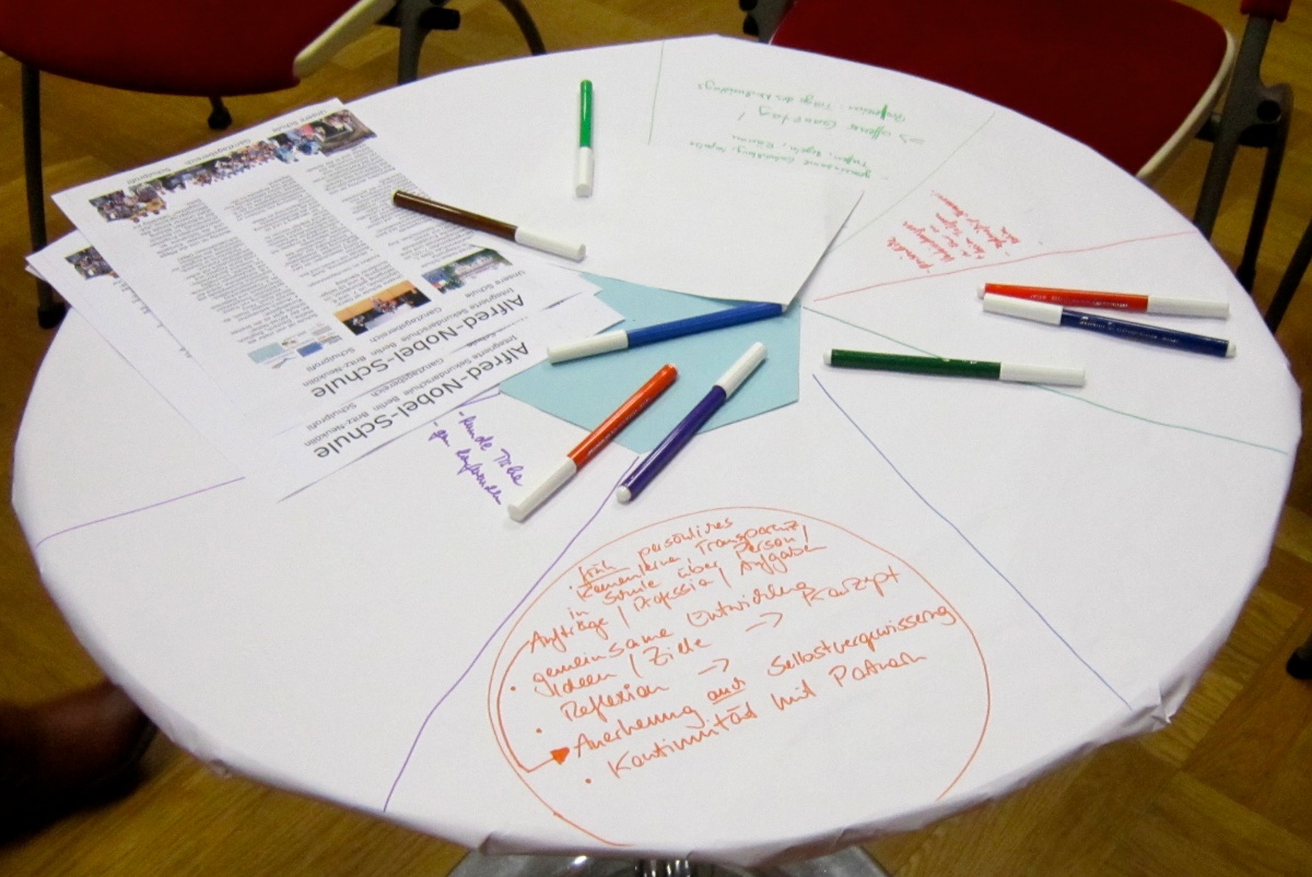 - Es kam die Kritik, dass oft stark von Anforderungen und zu wenig von den Möglichkeiten des Ganztags gesprochen wird. Auch wurde kritisiert, dass die außerschulischen Partner sehr stark als Dienstleister der Schule gesehen werden und der Einfluss der Partner auf die Gestaltung der Schule so zu kurz kommt. Daraufhin wurde erwidert, dass die Projekte der einzelnen Klassenstufen mit allen Projektträgern gemeinsam entwickelt werden.