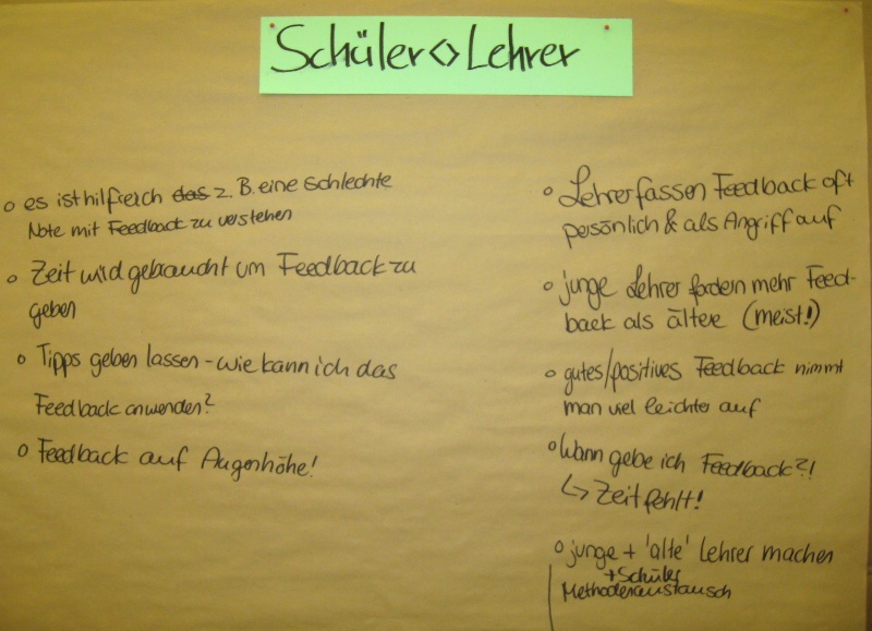 Feedback ist ein Instrument, um Veränderungen im Kleinen anzustoßen, sodass Schritt für Schritt ein möglichst erfolgreicher Lernraum entsteht, der bestmöglich für alle beteiligten Lehrerinnen und Lehrer sowie Schülerinnen und Schüler ist. In der strategischen Entwicklung einer Schule kann Feedback sowohl ein Motor sein, der Veränderungsprozesse überhaupt anstößt, als auch ein Korrektiv, das Veränderungen im Mikrokosmos Klassenraum immer wieder rückkoppelt. Im Gespräch mit der Gruppe werden die Schülerinnen und Schüler die Kriterien guter Feedbackkultur erarbeiten, über mögliche Ängste der Beteiligten sprechen und Wege entdecken, um Feedback an ihrer Schule erfolgreich einzuführen.