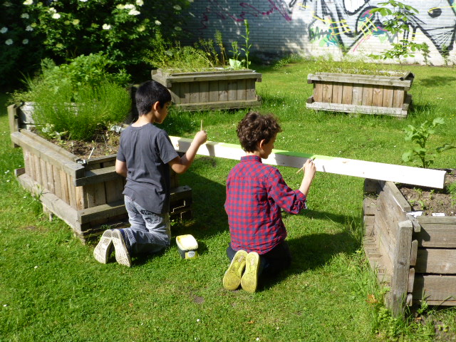 Ein wichtiger Baustein ist neben dem Anbau auch die Verarbeitung der Ernte. In der Küche wird Holunderbeer- und Apfelsaft gepresst, Marmelade eingekocht und es werden Muffins gebacken – ein Lernen mit allen Sinnen. Im Winter, wenn keine Arbeit im Außenbereich ansteht, finden im Schulhaus Angebote zum Bereich Garten und Natur statt, das kann das Umtopfen von Zimmerpflanzen sein, ebenso wie das Bauen von Nistkästen oder Papierschöpfen.